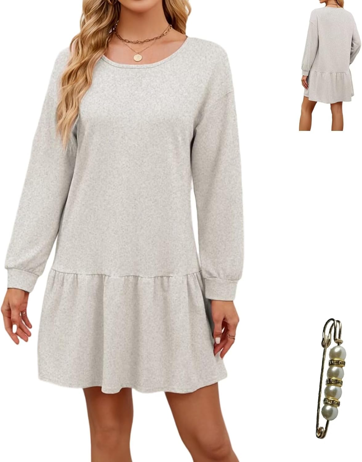 Womens 2026 Long Sleeves Crewneck Rib Knit Patchwork Sweatshirt Dress Casual Sporty Mini Dresses