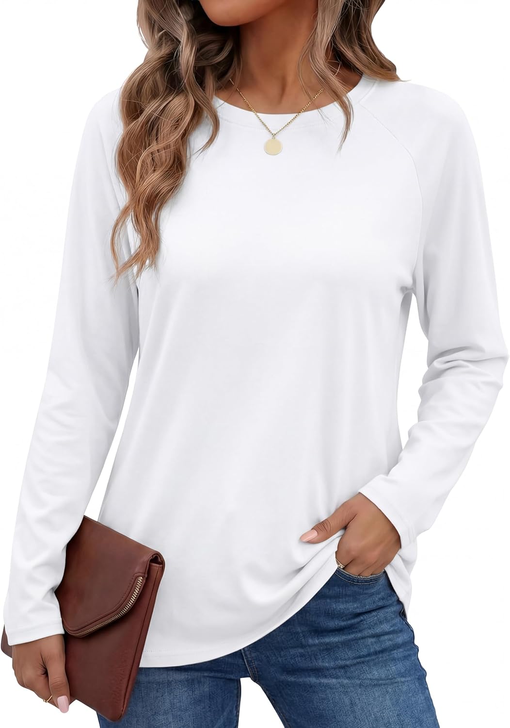 YUCOLEN Women’s Long Sleeve T Shirts Casual Loose Fit Layering Tops 2026 Trendy Raglan Sleeve Crew Neck Tees Basic Clothes
