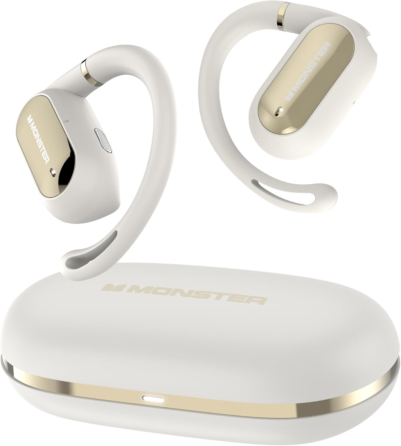 Monster Open Ear AC322 Wireless Earbuds, Bluetooth 5.4, 36H Playtime, IPX5 Waterproof, Open-Ear Design with Adjustable Ear Hooks, Secure Fit for Running & Workout, Clear Calls White