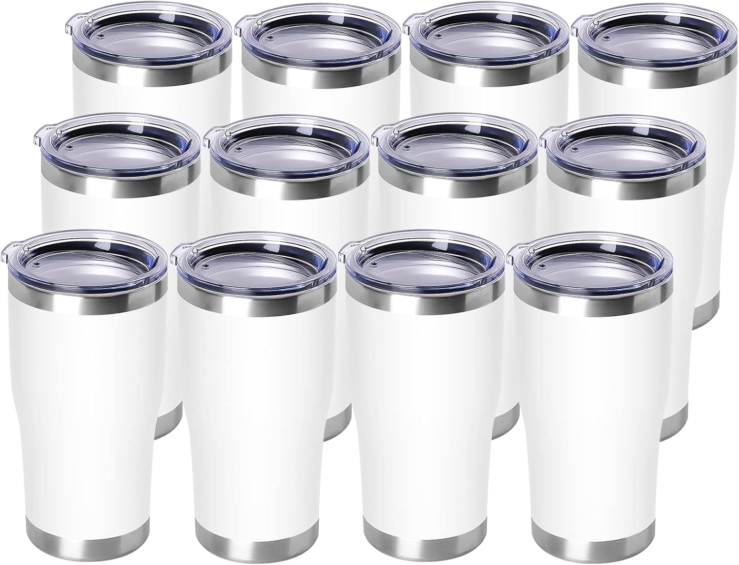 DOMICARE 20oz Tumbler with Lid Stainless Steel Tumblers Bulk, Double Wall Vacuum Insulated Coffee Travel Mug Powder Coated Tumbler, 12 Count (Pack of 1) White