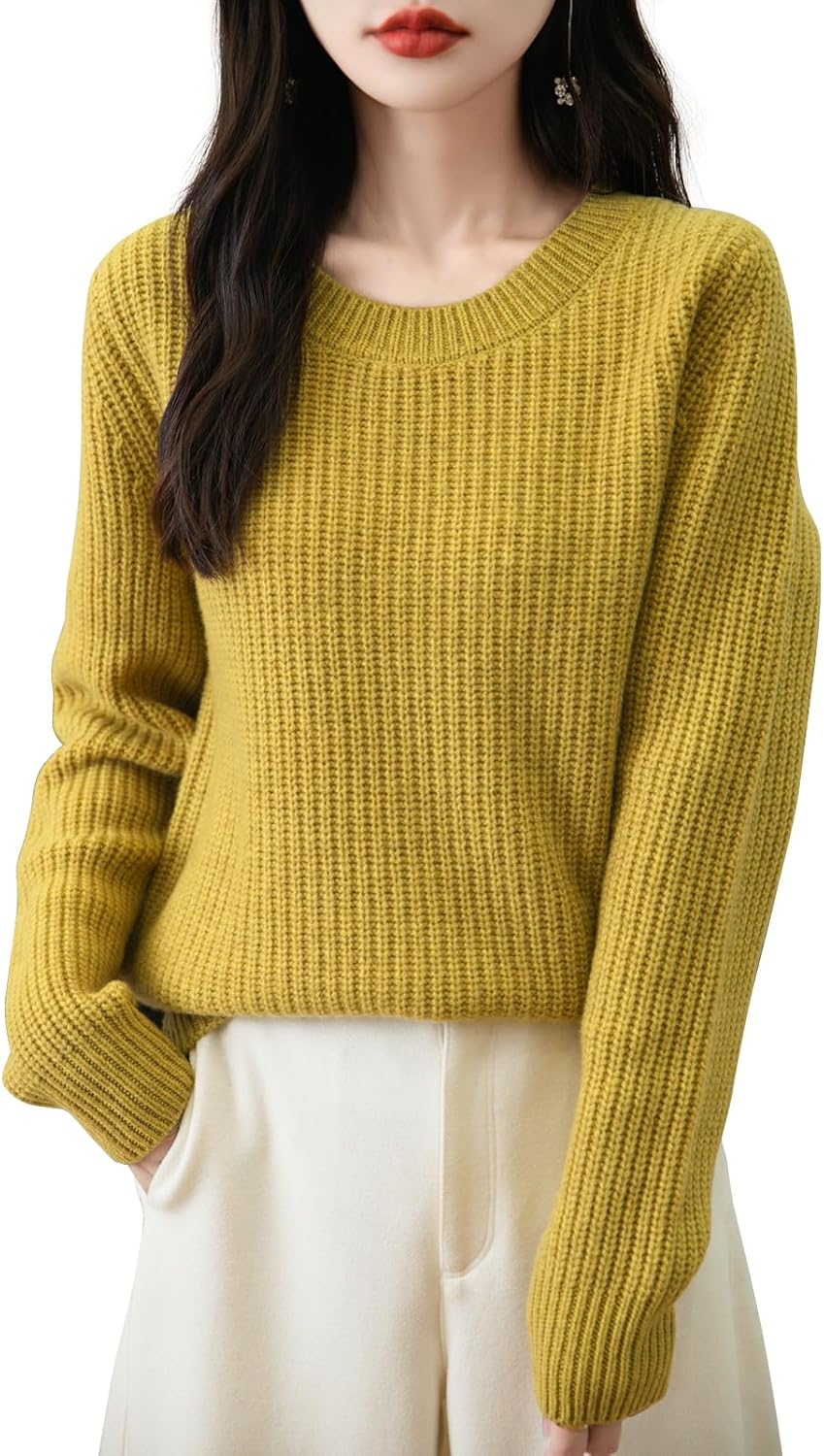 Chanyarn Women's 100% Merino Wool Sweater 2025 Fall Winter Casual Crewneck Long Sleeve Ribbed Knitted Pullover Sweater