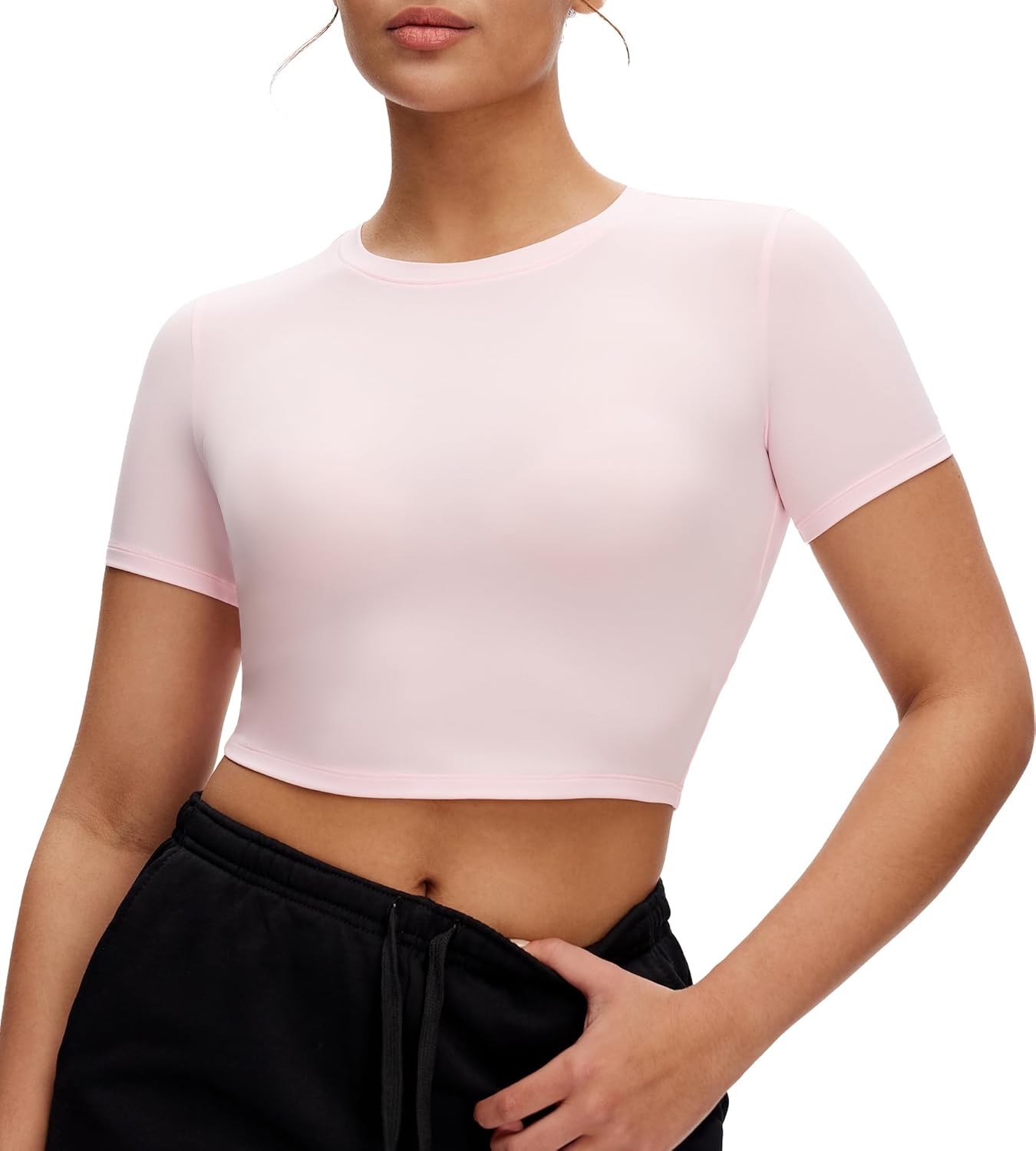 NANJI Crop Tops for Woman - Slim Fit Short Sleeve Crew Neck Cropped T Shirt, Basic Women's Crop Tee Casual Wear and Workout