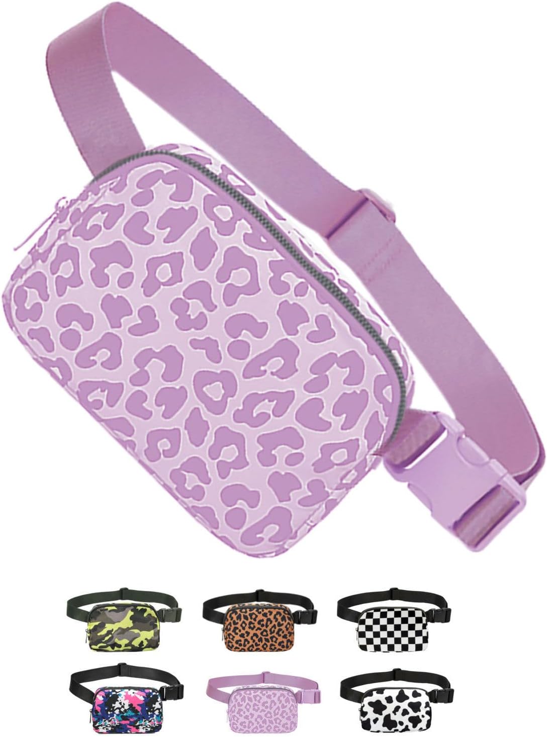 Tapp Collections Unisex Mini Crossbody Belt Bag with Adjustable Strap Small Waist Pouch for Workout Running Traveling Hiking - A Pattern/Leopard Pink