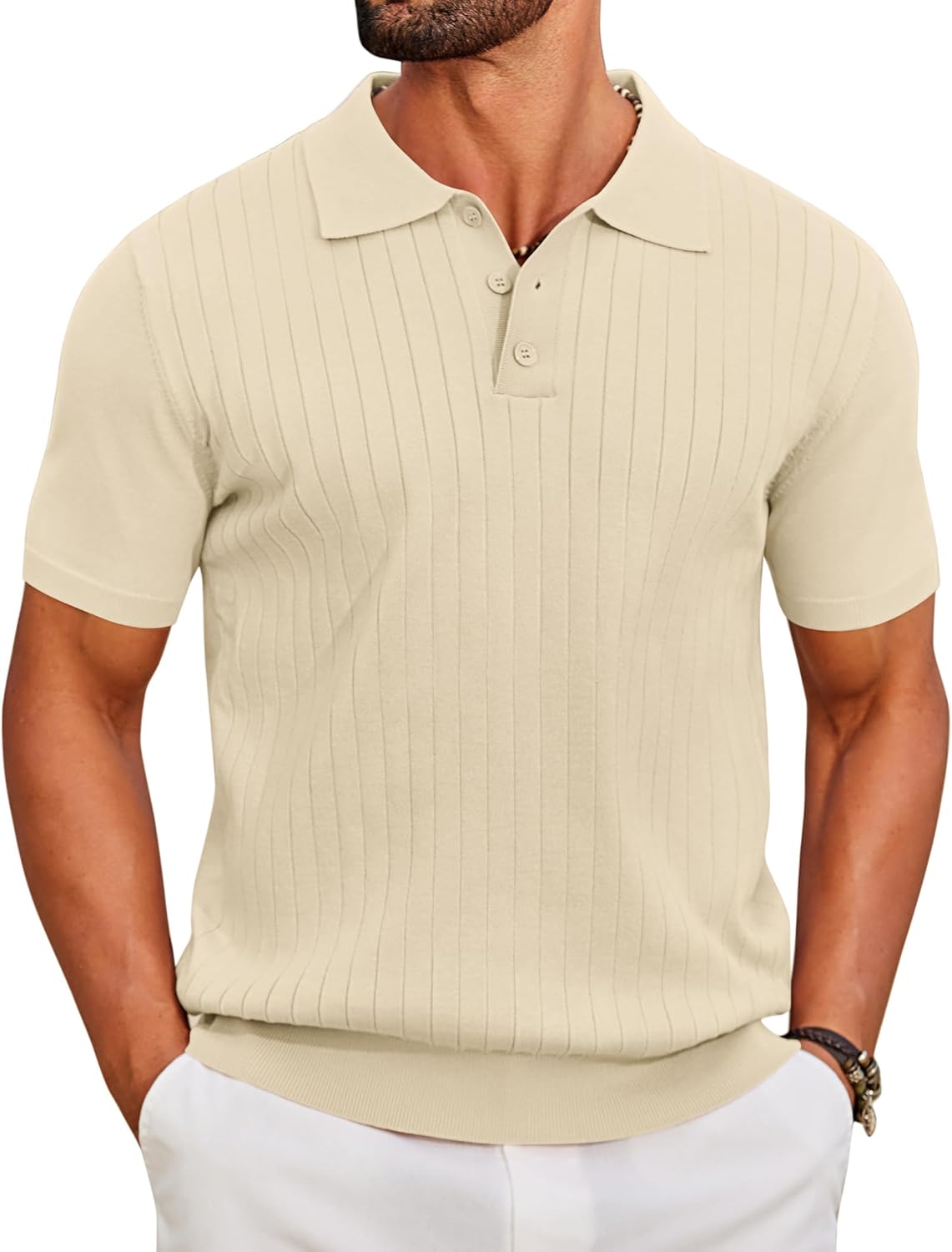 COOFANDY Men's Knit Polo Shirts Short Sleeve Ribbed Knitted Shirt Summer Lightweight Casual Golf Shirts