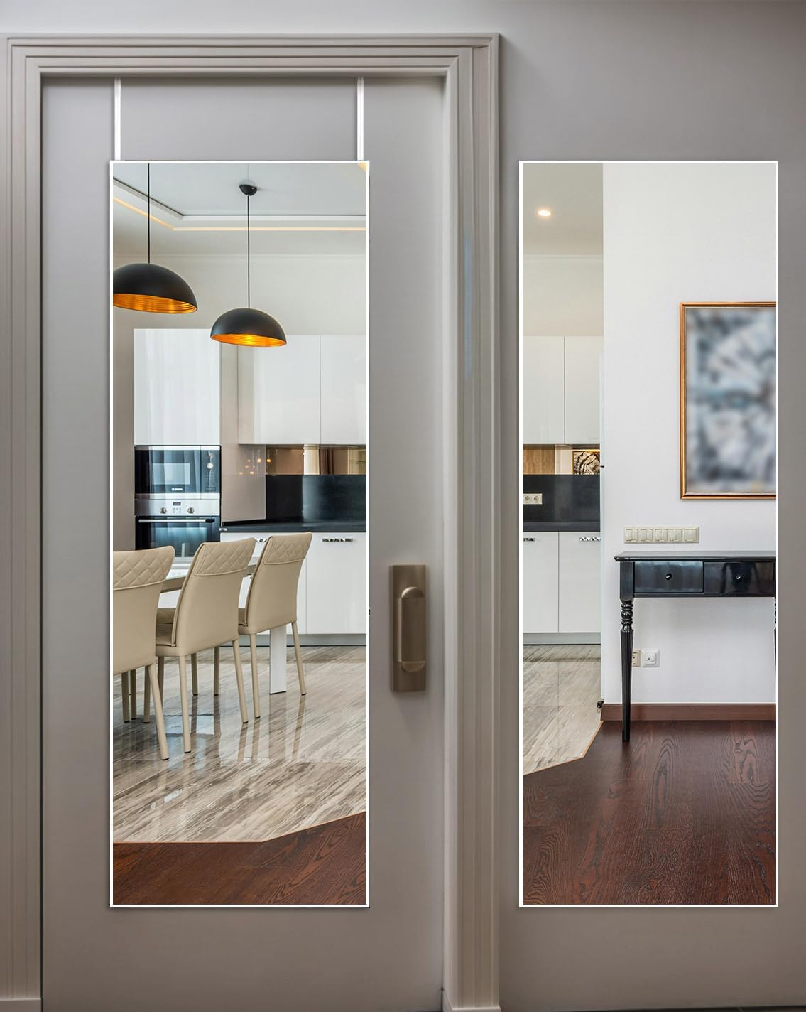 - 👍【SIMPLE INSTALLATION & SPACE-SAVING】Designed for versatile hanging options, whether on the wall or over the door. Easy-to-follow instructions and included hardware make setup a breeze, ideal for optimizing space in smaller rooms or tight corners. Suitable for use as a bedroom, living room, or bathroom wall-mounted mirror.