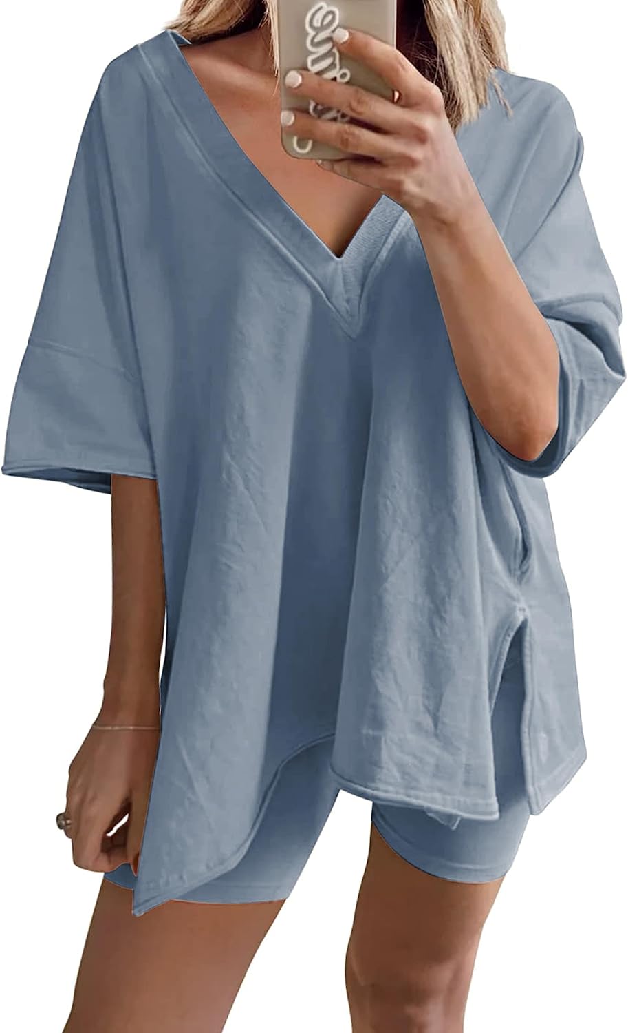 LTSCNRM 2 Piece Outfits for Women Reversible Oversized T Shirt Biker Shorts Sets Workout Tracksuit
