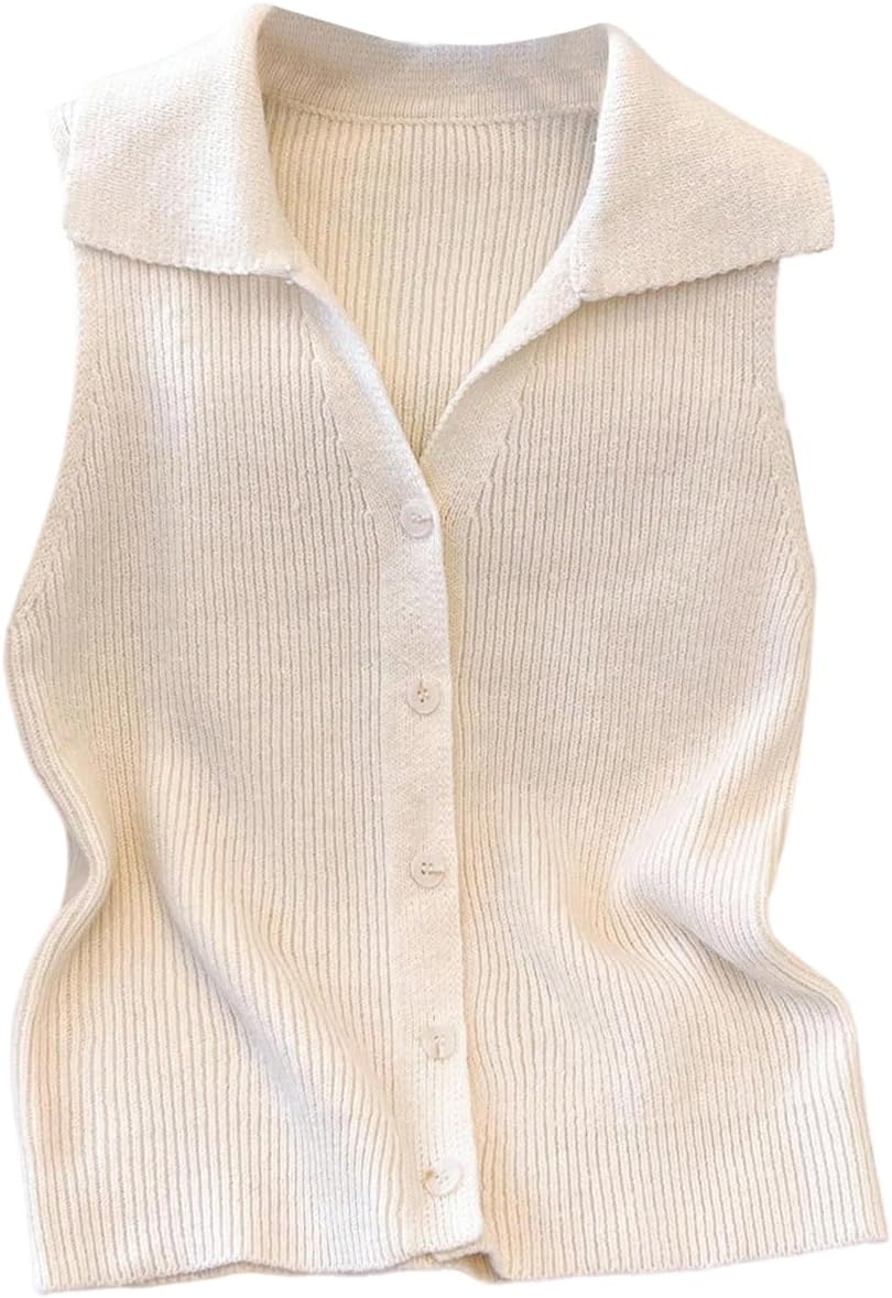 MakeMeChic Women's Sleeveless Sweater Vest Button Down Collared Knitted Pullovers