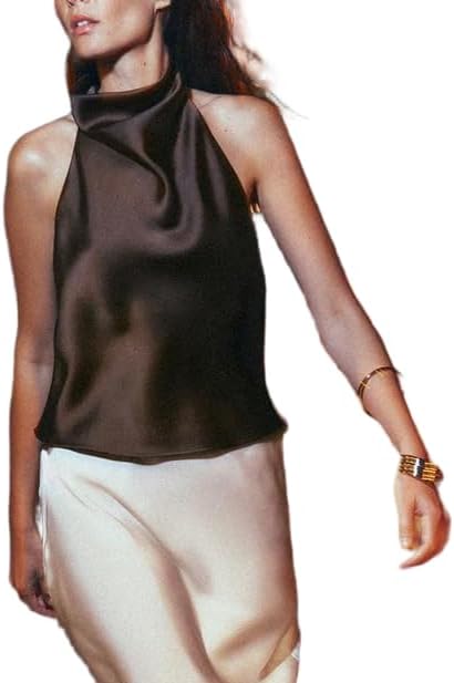 Women Backless Halter Tops Y2k Silk High Mock Neck Sleeveless Crop Tank Tops Sexy Satin Open Back Going Out Camisole