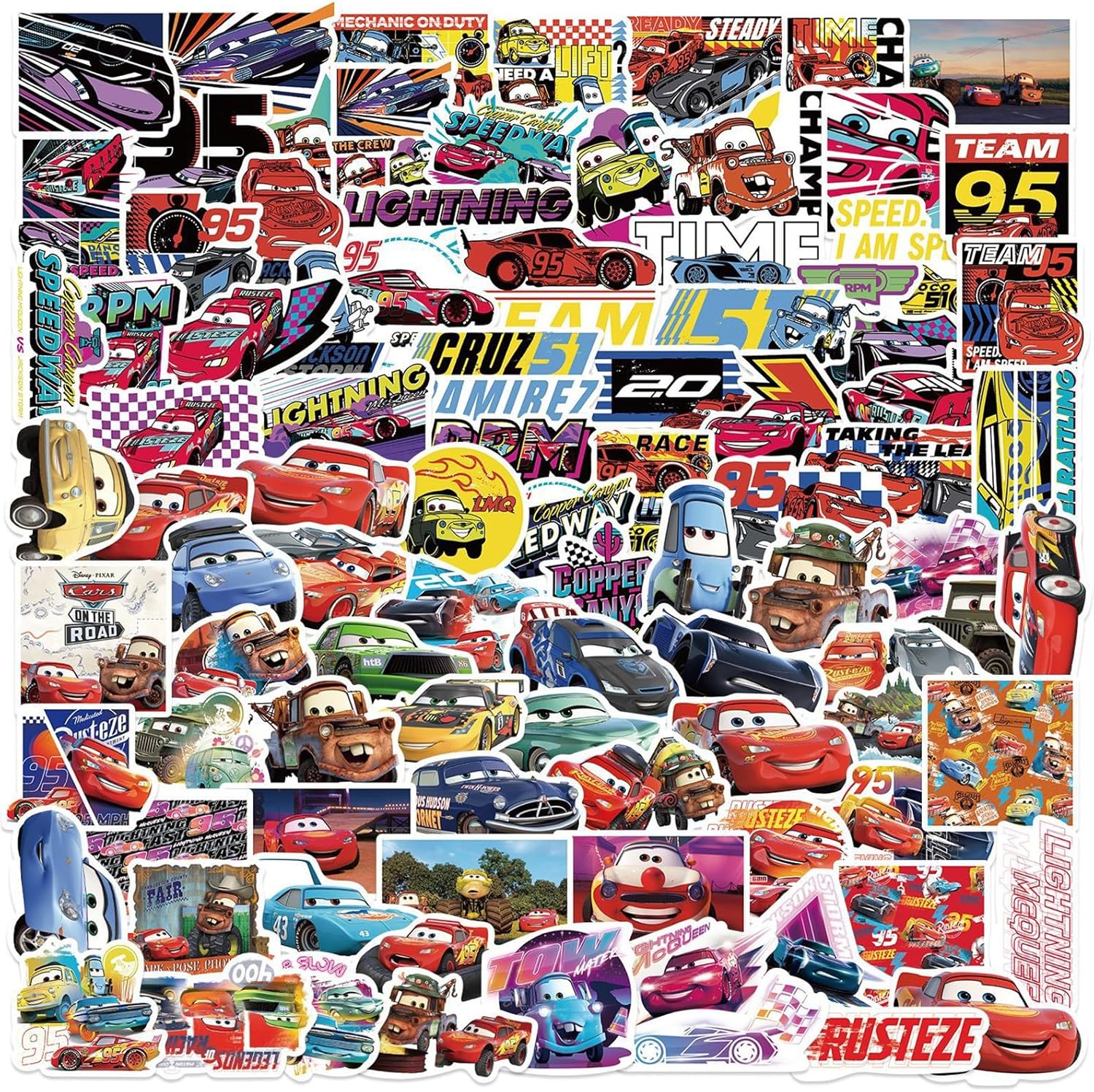 100Pcs Cars Stickers Cool Disney Cartoon Movie Stickers, Vinyl Waterproof Sports Car Sticker for Laptop, Guitar, Water Bottle, Birthday Gifts for Girls, Kids, Teens (100Car)