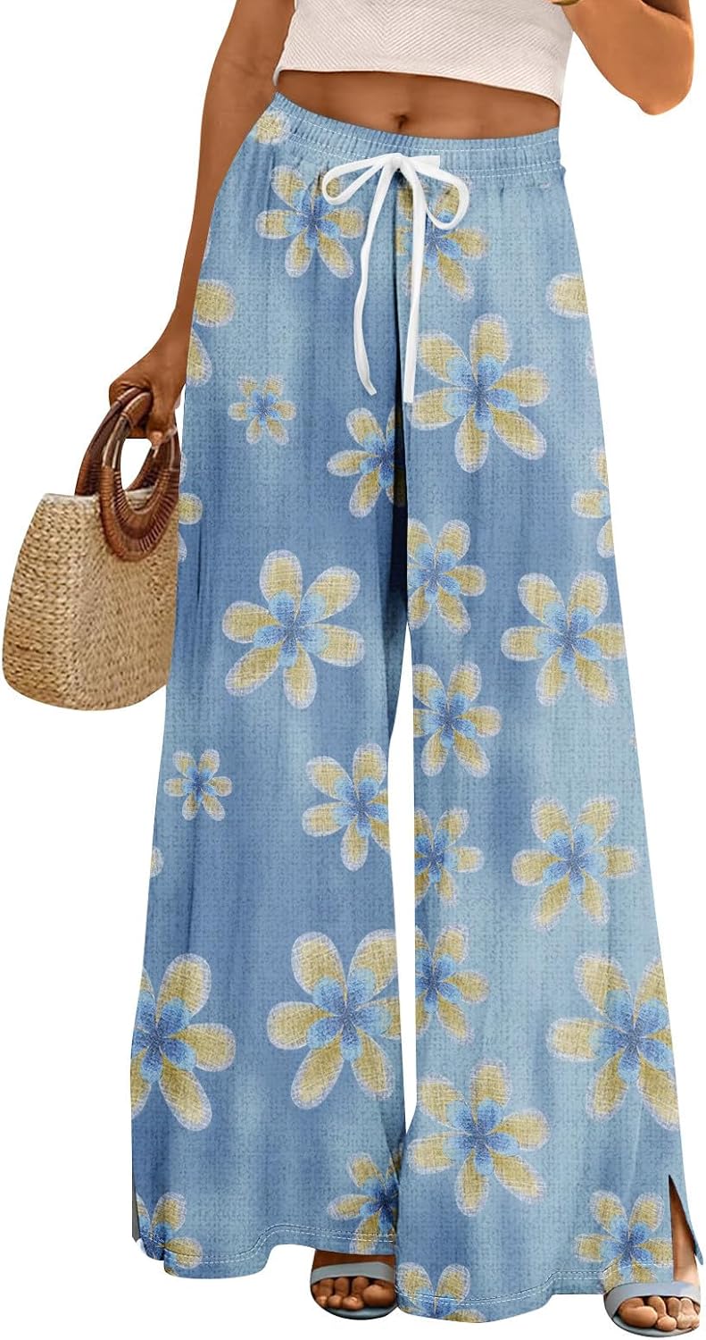 Dress Pants Women Petite High Waisted Wide Leg Summer Beach Vacation Women's Pants Boho Lounge Casual Palazzo Trousers