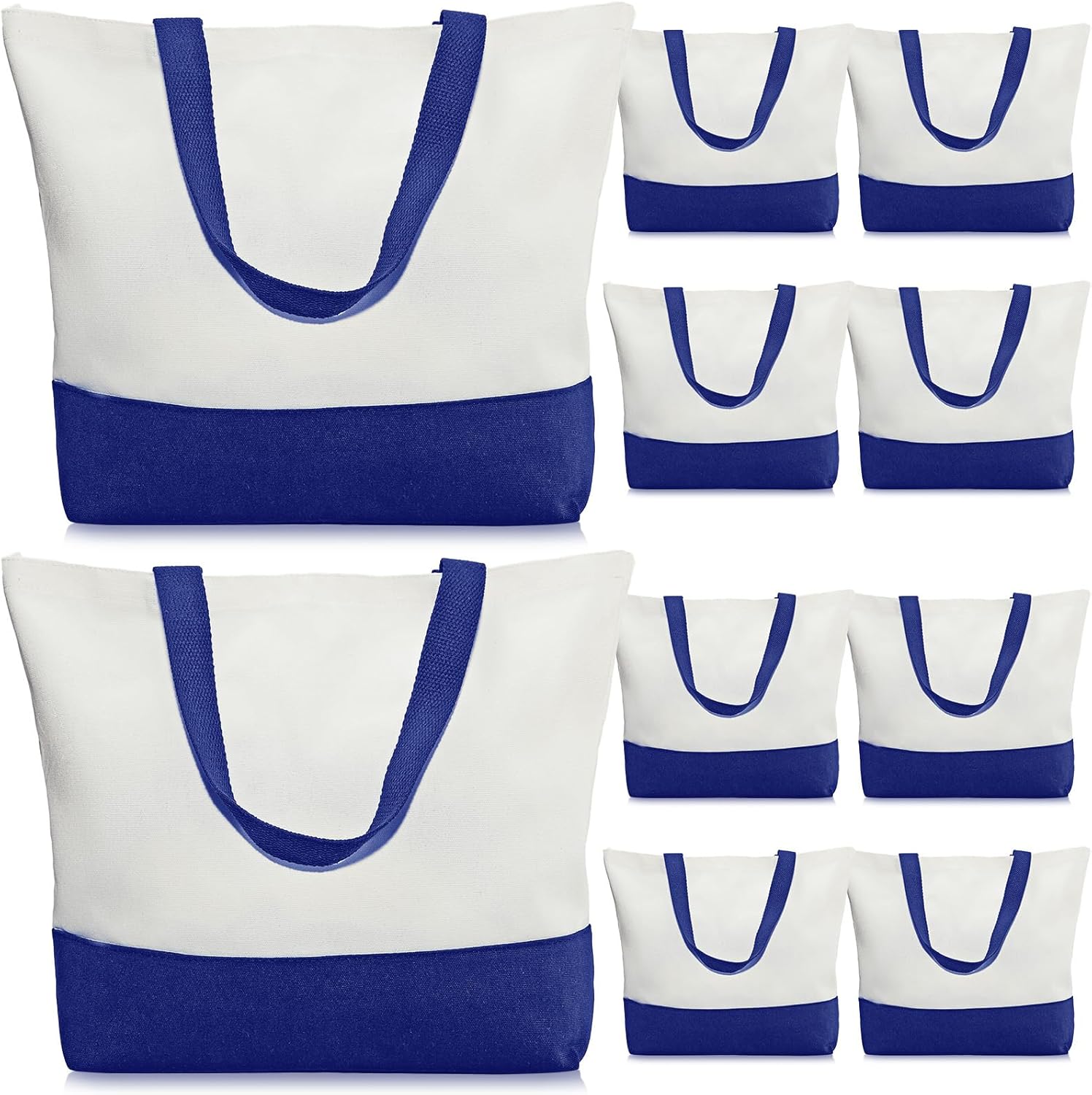 Weewooday 10 Pack Canvas Tote Bag Large Blank Reusable Grocery Bags with Handles DIY Cloth for Shopping Beach Travel(Navy Blue, White)