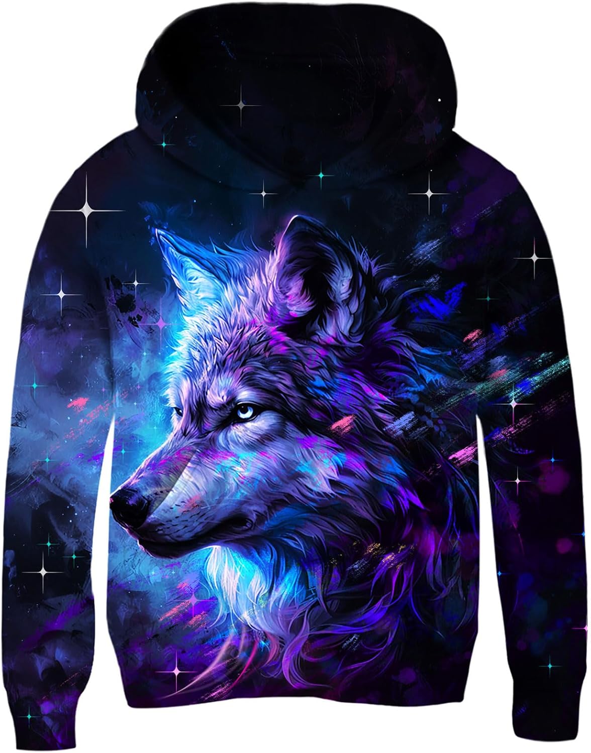 Funnycokid Boys Hoodies Kids Sweatshirt Warm Youth Print Girls Hooded Clothes with Pocket 6-16 Years