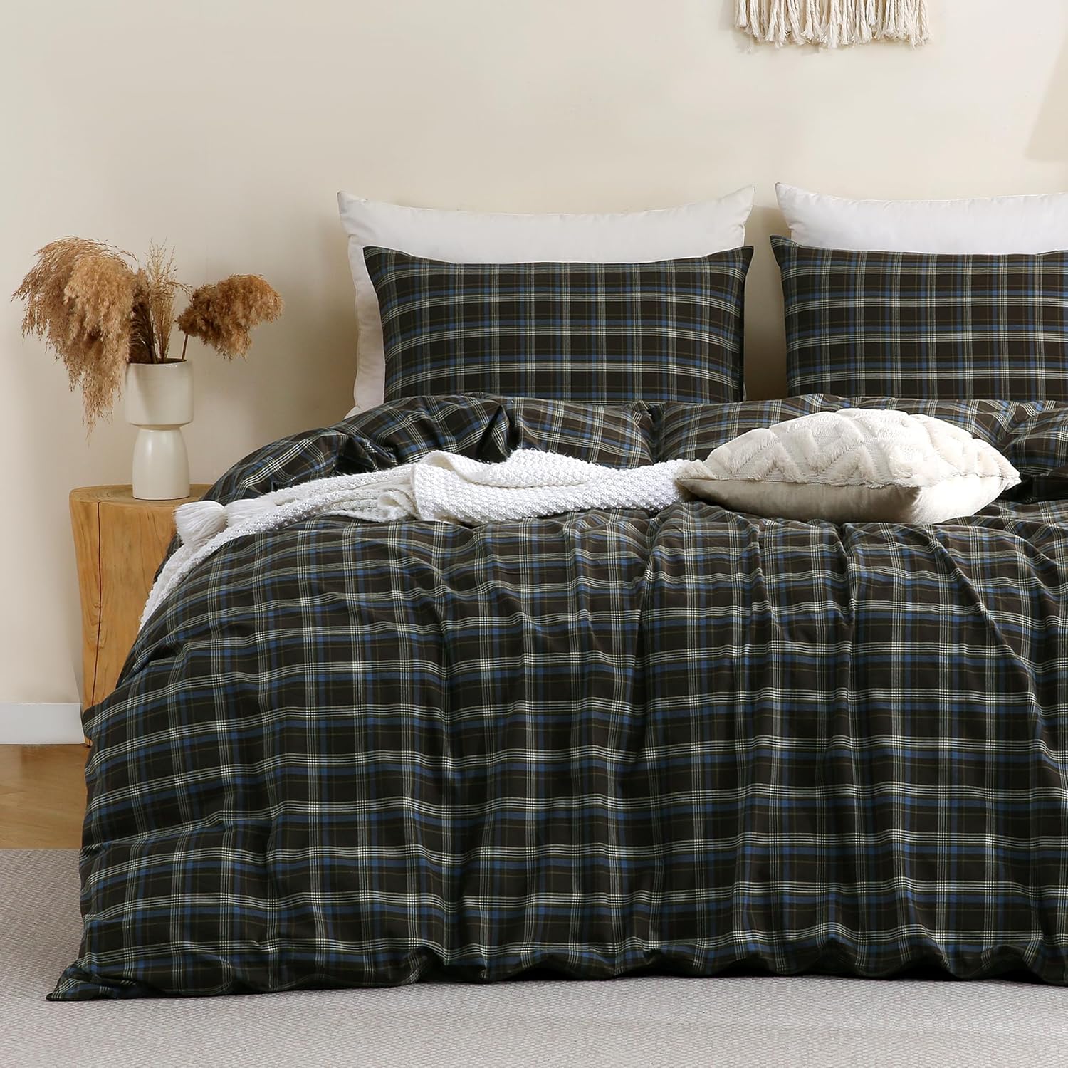 - Classic Buffalo Plaid in Calming Brown & Blue: Immerse your bedroom in the timeless charm of our Buffalo Plaid duvet cover, featuring a sophisticated blend of warm brown and serene blue. This classic gingham checkered pattern effortlessly creates a cozy, rustic, yet modern ambiance, making it the perfect centerpiece for your bedroom decor.