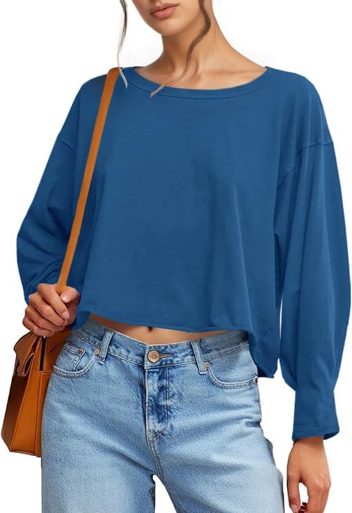 UNCLECAT Womens Long Sleeve Crop Tops Oversized Cropped Tshirts Crew Neck Loose Fit Fashion Workout Tee Shirt