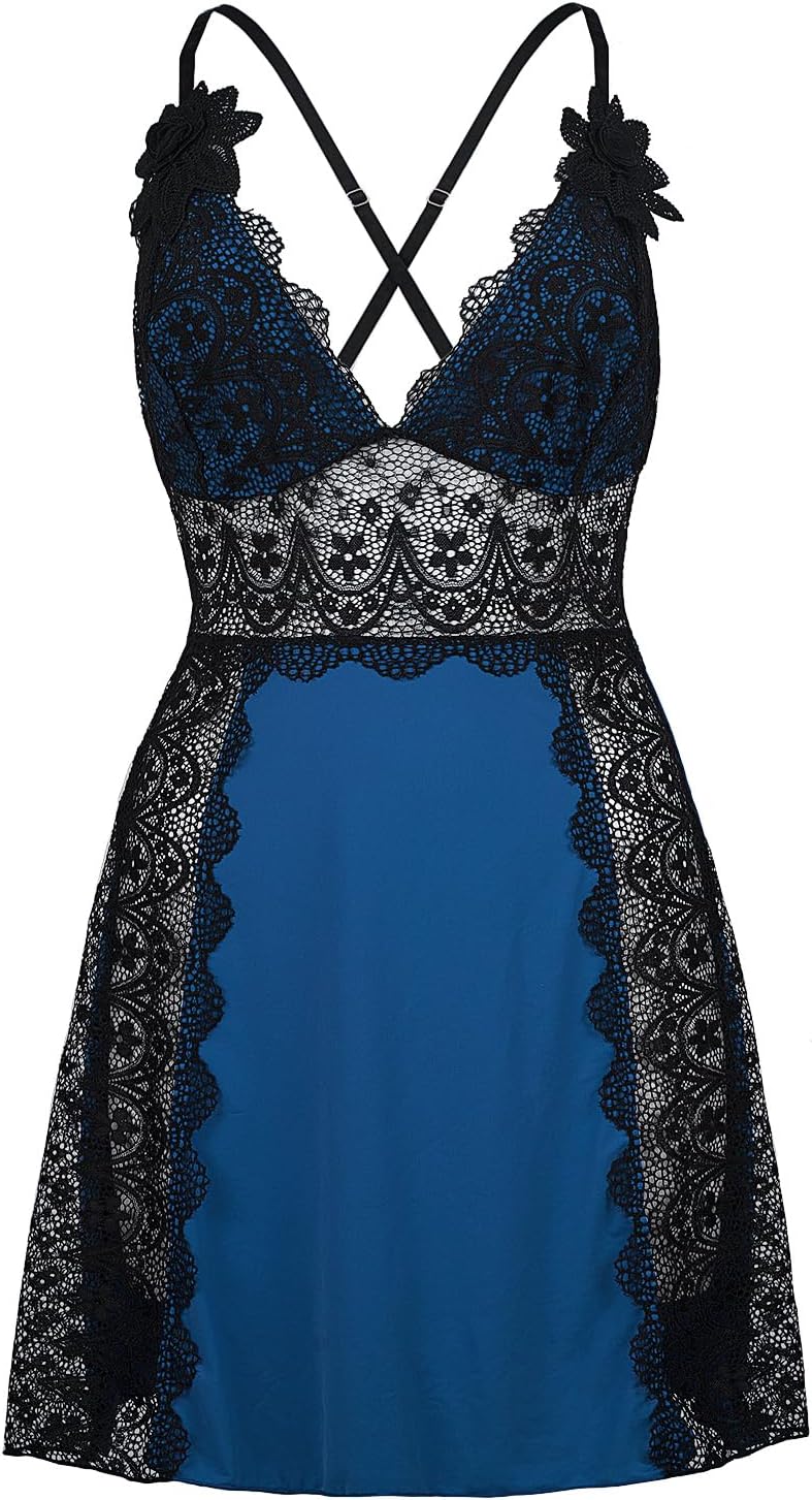 LINGERLOVE Plus Size Lingerie Set for Women Sexy V Neck babydoll Chemises Lace Mesh Nightgown M-4XL