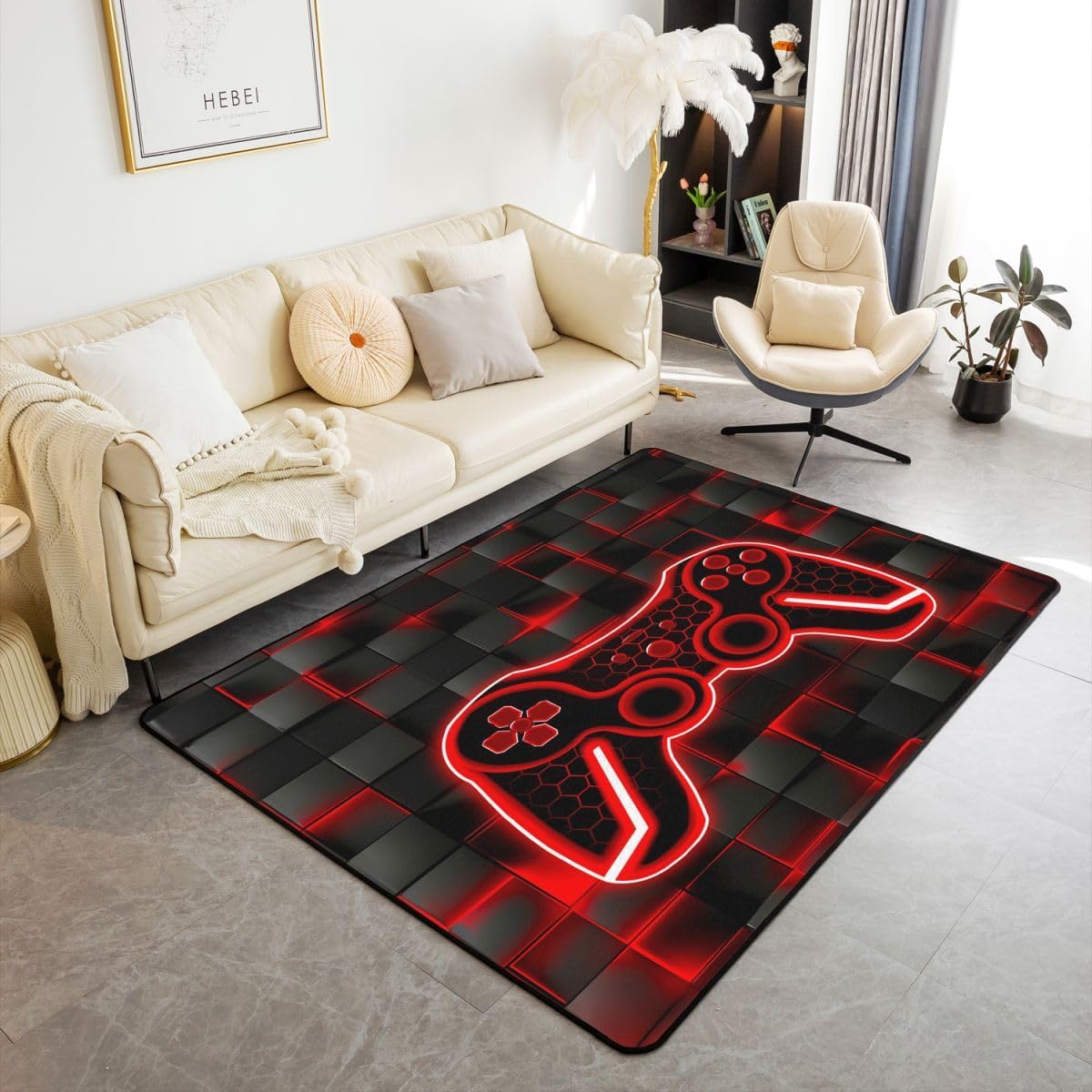 Feelyou Kids Gamer Area Rug 3x5 Red and Black Rugs for Living Room Bedroom for Boys Teens Room Decor Gaming Ombre Decorative Rug Set Square Indoor Floor Mat