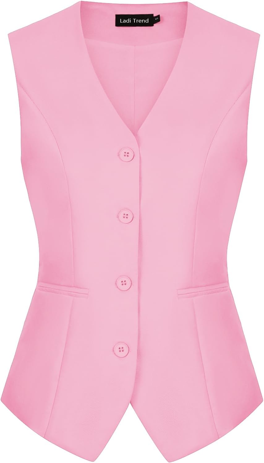 MINTLIMIT Fully Lined Waistcoats for Women Sleeveless Button Down V-Neck Fitted Vest Waistcoat(Light Pink M)