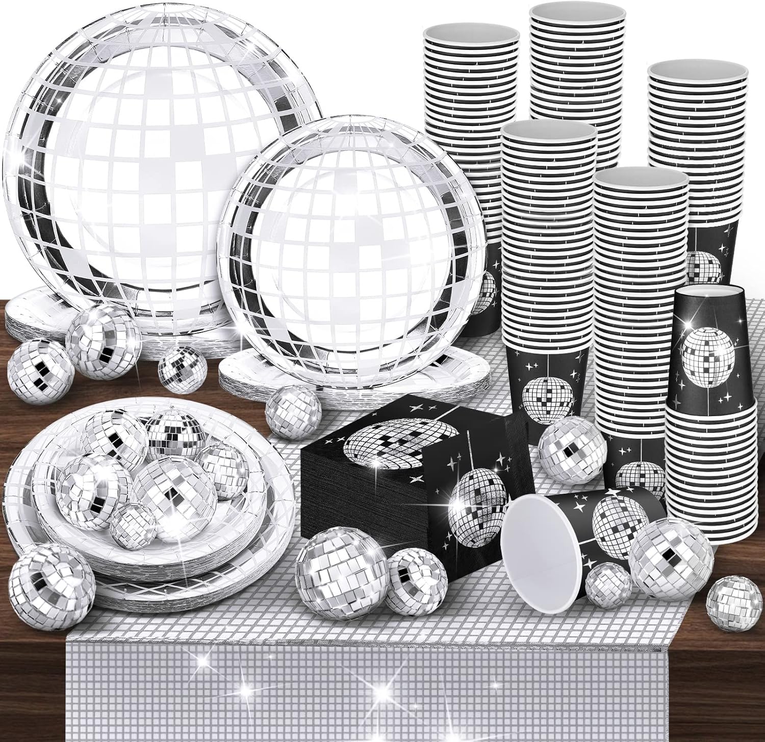 - Convenient and Easy to Clean: you can directly throw these disco cups, plates, napkins after using to save the cleanup time, while still enjoying the decorative and elegant atmosphere they add to your parties; Note: please do not microwave these plates and cups