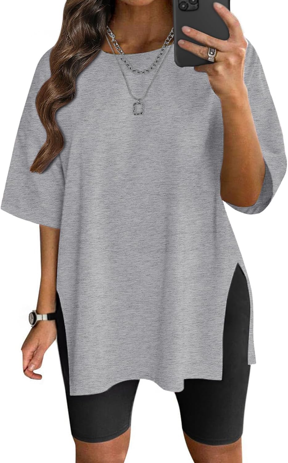 VNIRA Plus Size T Shirt for Women Oversized Cotton Short Sleeve Workout Top Loose Fit Side Split Casual Basic Tunic Top