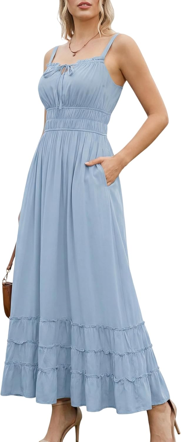 Scarlet Darkness Women's Summer Maxi Dress 2026 Boho Sleeveless Ruffle Flowy Milkmaid Sundress with Pockets