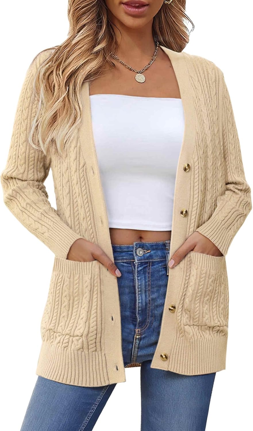 Allegra K Cardigan Sweaters for Women's Cable Knit Chunky Button Up Fall Winter Long Sleeve Casual Outwear Coat