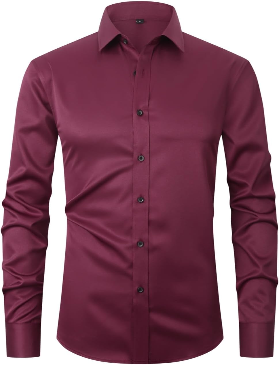 corfty Men Long Sleeve Dress Shirt - Regular Fit Stretch Free-Wrinkle Button Down Shirt