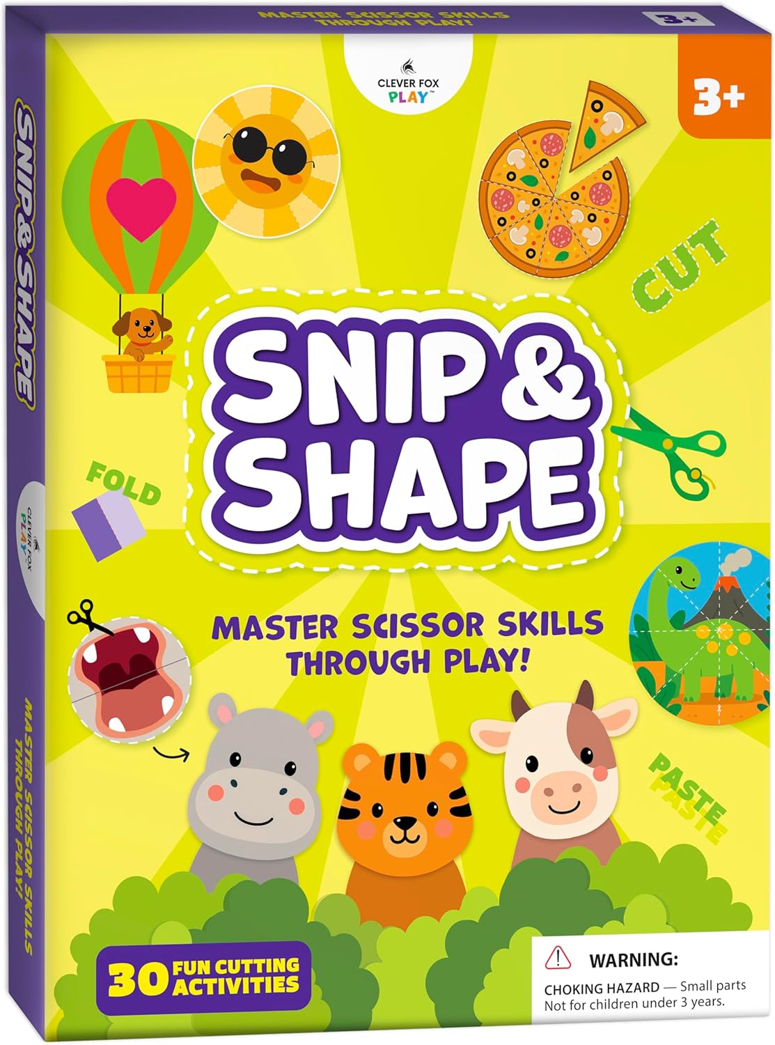 Clever Fox Play Snip & Shape Scissor Skills Activity Book for Kids Ages 3 4 5 6 7 – Arts & Crafts Kit with Safety Scissors for Toddler – 30 Preschool Cutting Craft Activities for Boys & Girls