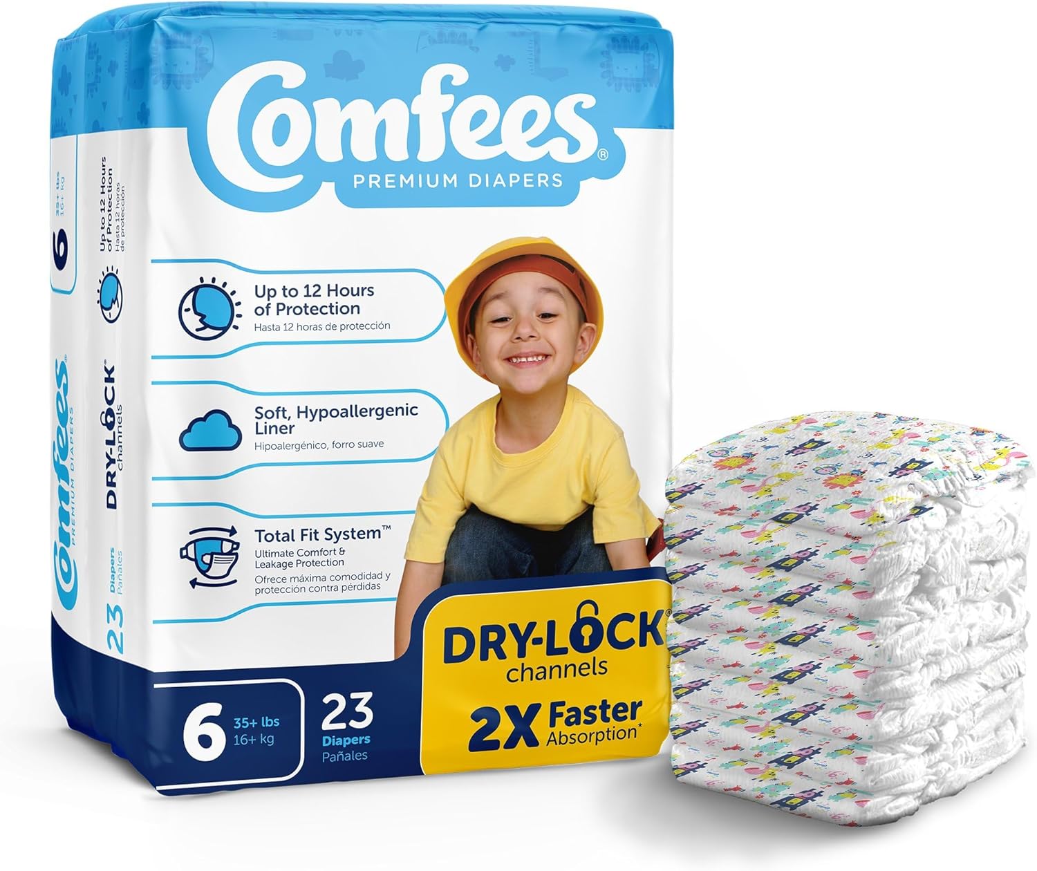 Comfees Premium Baby Diapers with Total Fit System for Boys & Girls, Size 6, 92Count