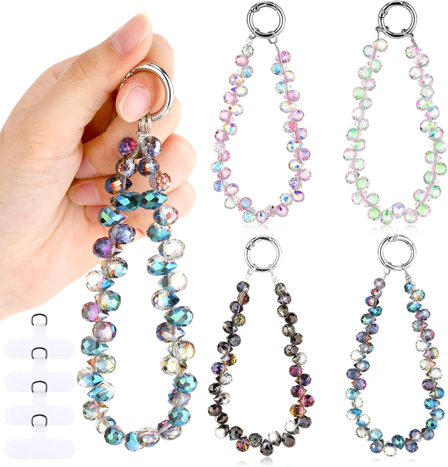 Quelay 4 Pack Phone Wrist Strap Beaded Cell Phone Lanyards Wrist Charms Bling Cellphone Wristlet Bracelet Strap for Women