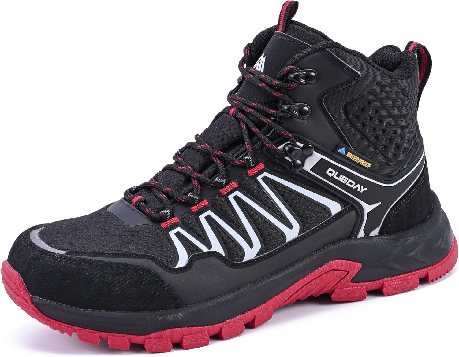 Queday Waterproof Hiking Boots Mens Lightweight Walking Shoes Daily Hike Trekking Trail Outdoor Camping Climbing