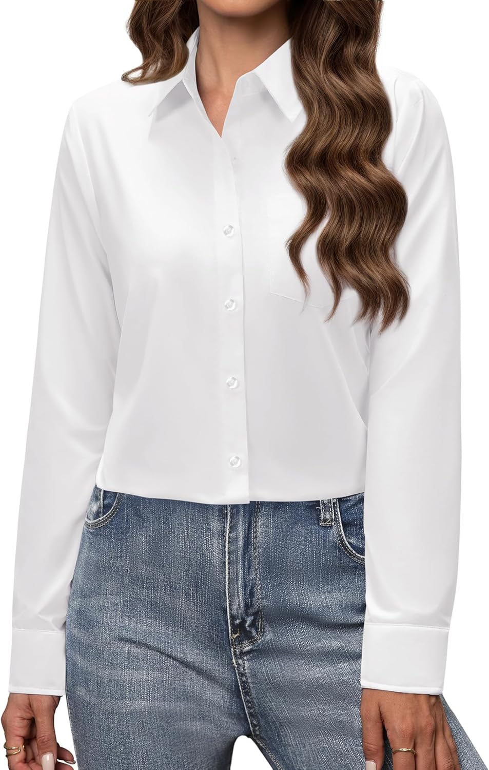 J.VER Button Down Shirts for Women Long Sleeve Dress Shirts Solid Business Causal Collared Work Blouses Top