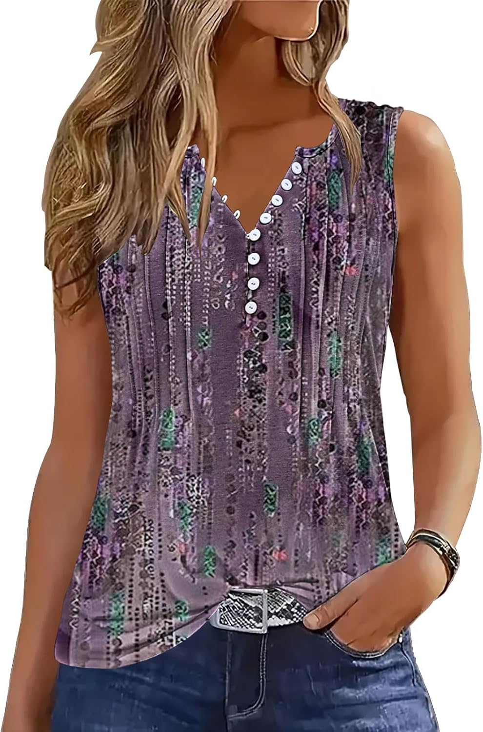 ETCYY Tank Tops for Women 2026 Summer Pleated Tunic Loose Fit Sleeveless Shirts Dressy Casual V Neck Button Down Blouses