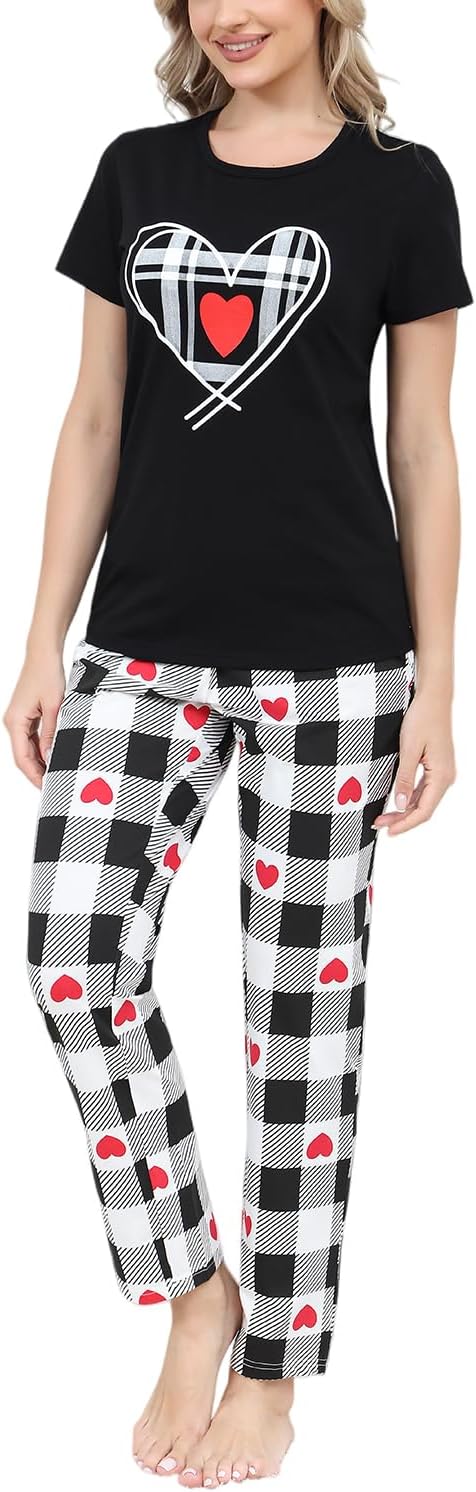 EISHOPEER Women's Cotton Pajama Set Cute Printed Short Sleeve Top & Long Pants Sleepwear Pjs Sets