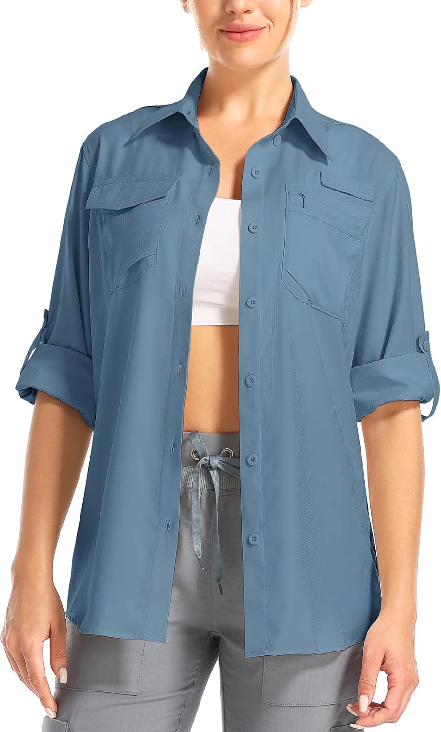 Women's UPF 50 Long Sleeve UV Sun Protection Shirts Hiking Safari Fishing Travel Shirts