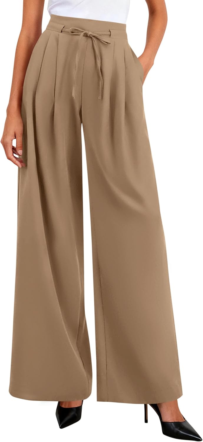 PRETTYGARDEN Womens Spring Wide Leg Dress Pants Business Casual Work High Waist Baggy Tie Trousers Pleated Palazzo Slacks