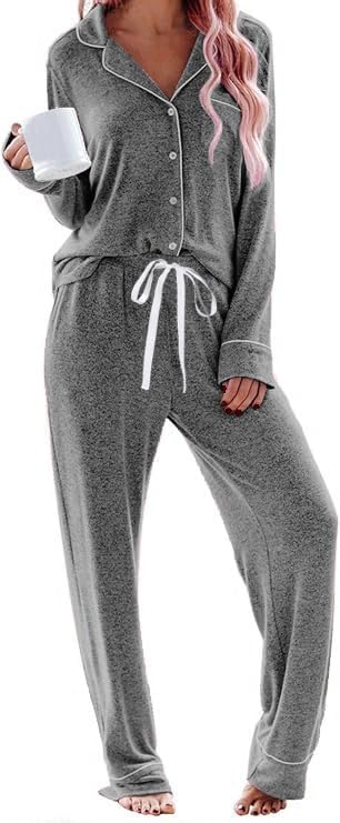 JEYONG Women's Pajama Set – Long Sleeve Button Down Postpartum Lounge Sets – Soft Loungewear Sleepwear Set Cozy PJs for Women