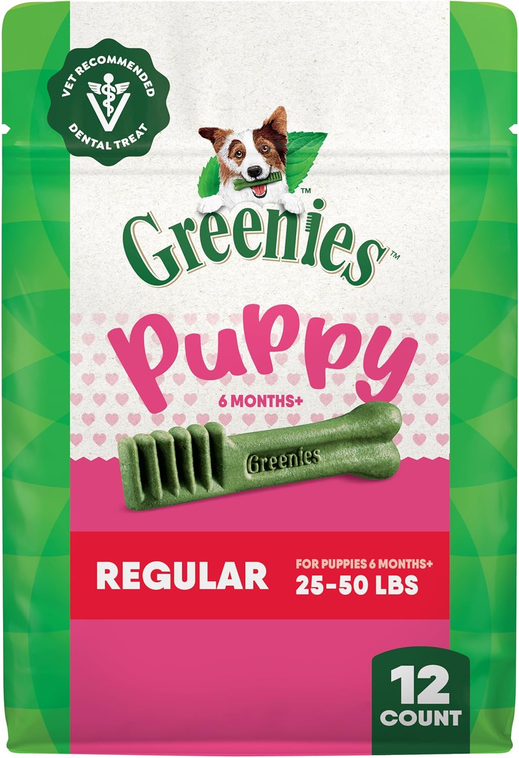 Greenies Dental Treats for Dogs, Veterinarian-Recommended Natural Puppy Treats Regular Size, 6 oz. Pack, 12 Count