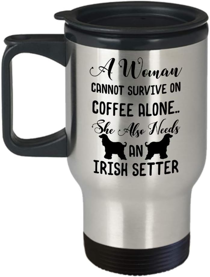 Funny Irish Setter Travel Mug Dog Gifts Accessories Gift Idea Lover - A Woman Cannot Survive On Coffee Alone