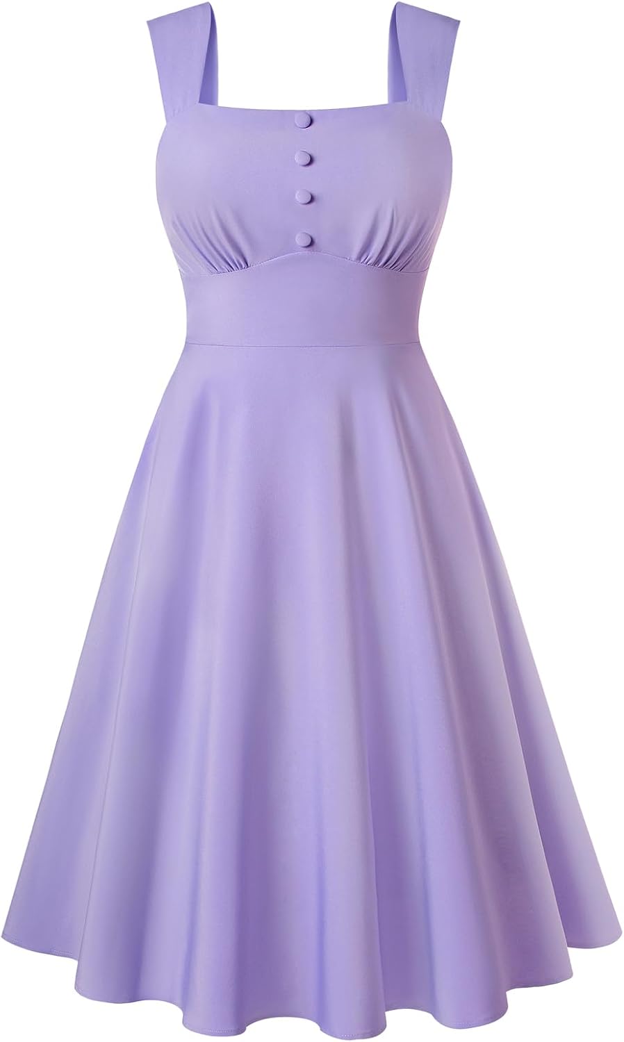 Belle Poque Square Neck Sundress for Women A Line Midi Dress Summer Cocktail Tea Party Dress with Pockets