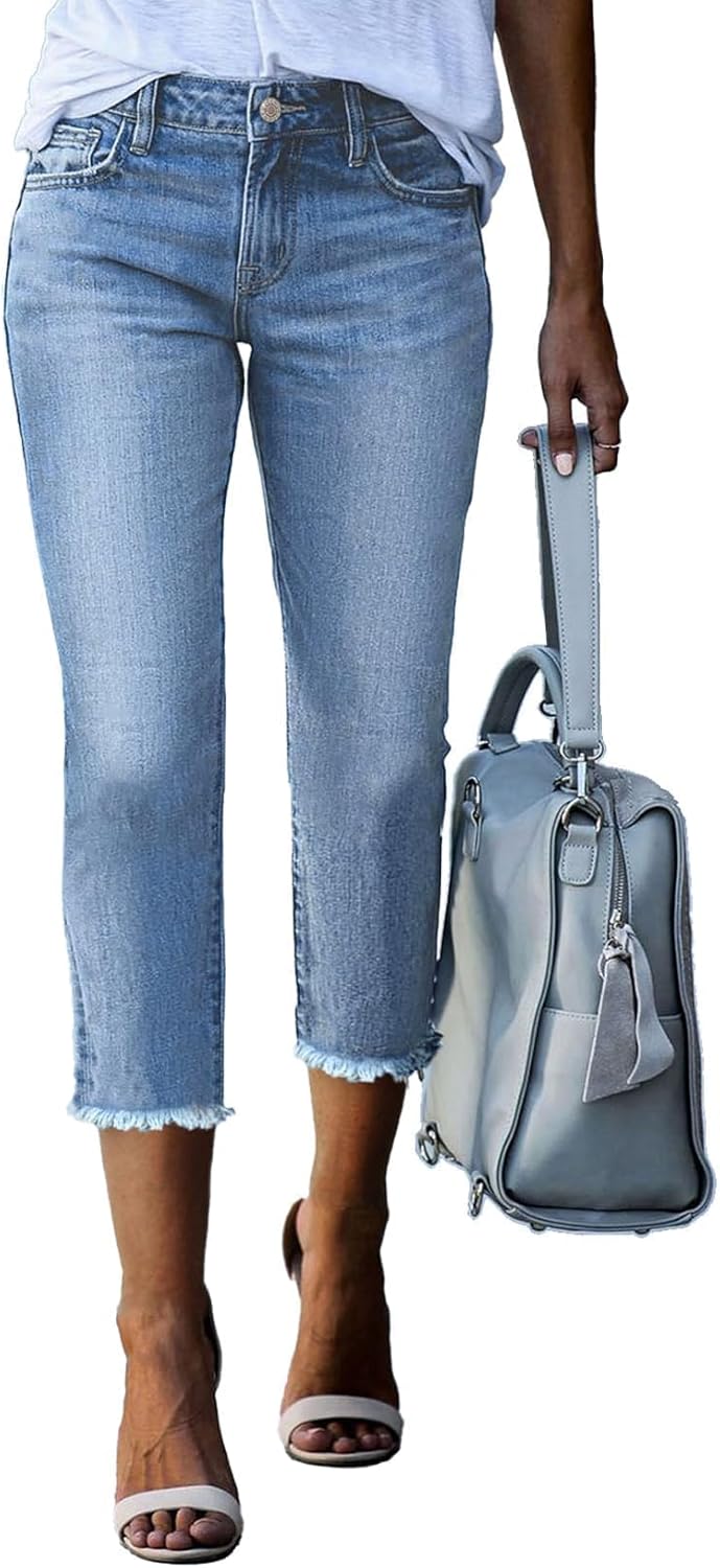 Sidefeel Women's Capri Jeans High Waisted 2026 Summer Fashion Straight Leg Raw Hem Denim Capri Pants