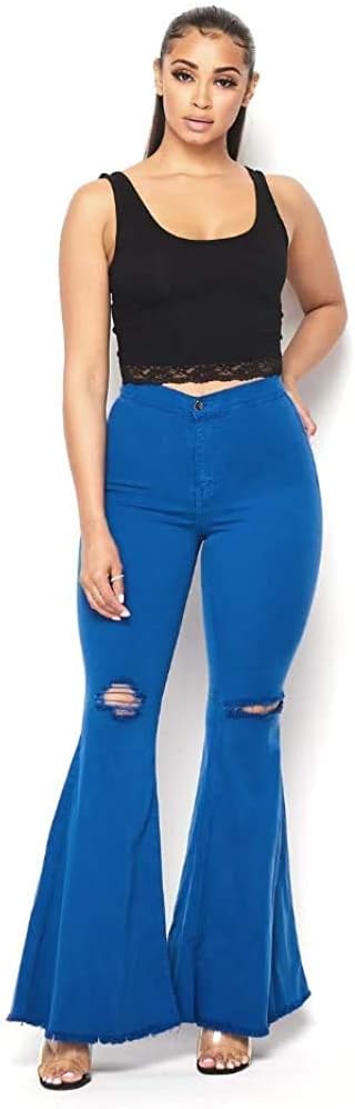 Vibrant Women's Juniors Bell Bottom High Waist Fitted Denim Jeans