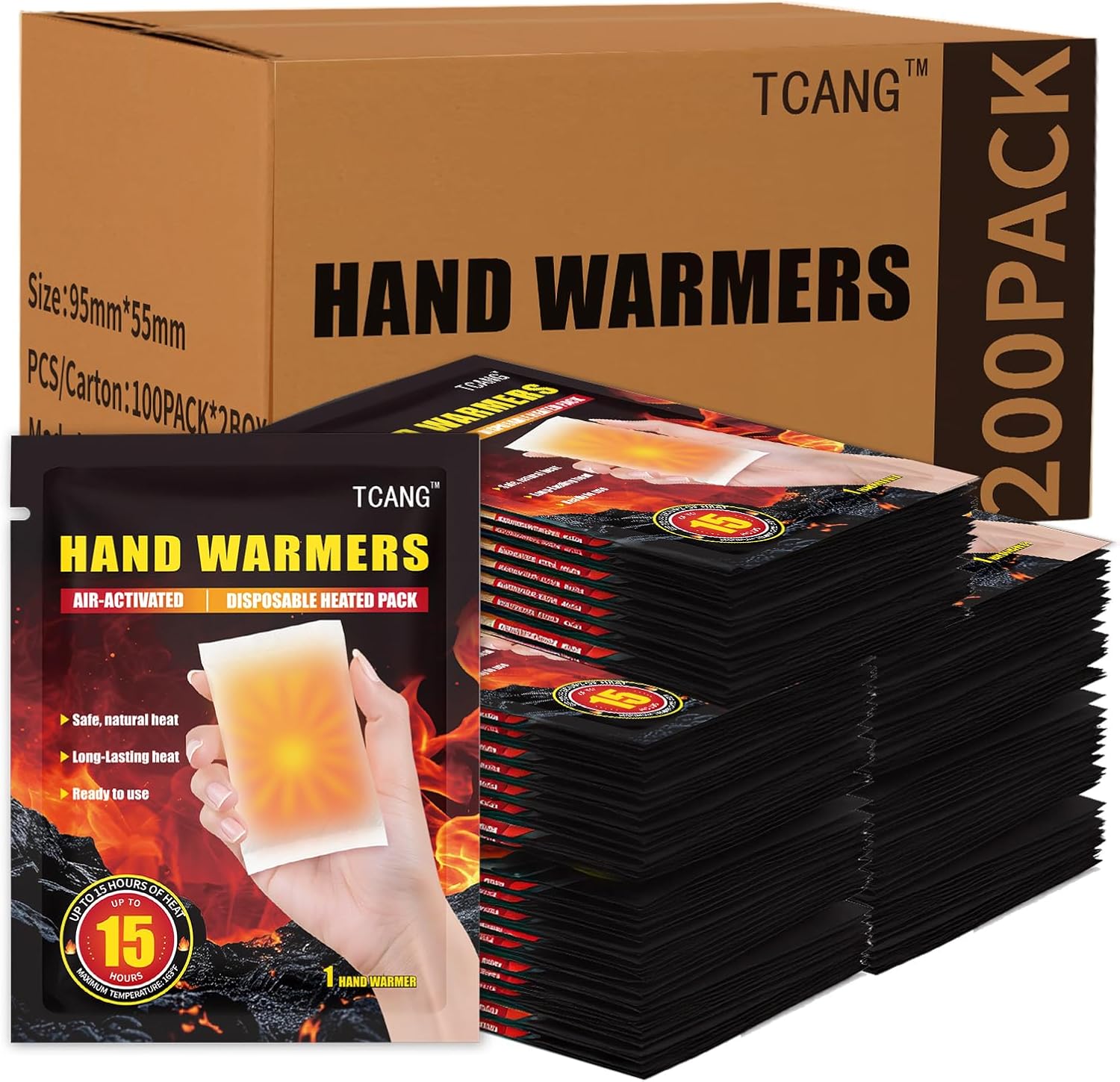 Hand Warmers Disposable - Up to 15 Hours of Heat - 50/100/200 Pack Super Long Lasting Air Activated Warmers, All Natural, Portable for Body, Hands & Toes - Odorless Hot Warmer Heater for Outdoor Sport