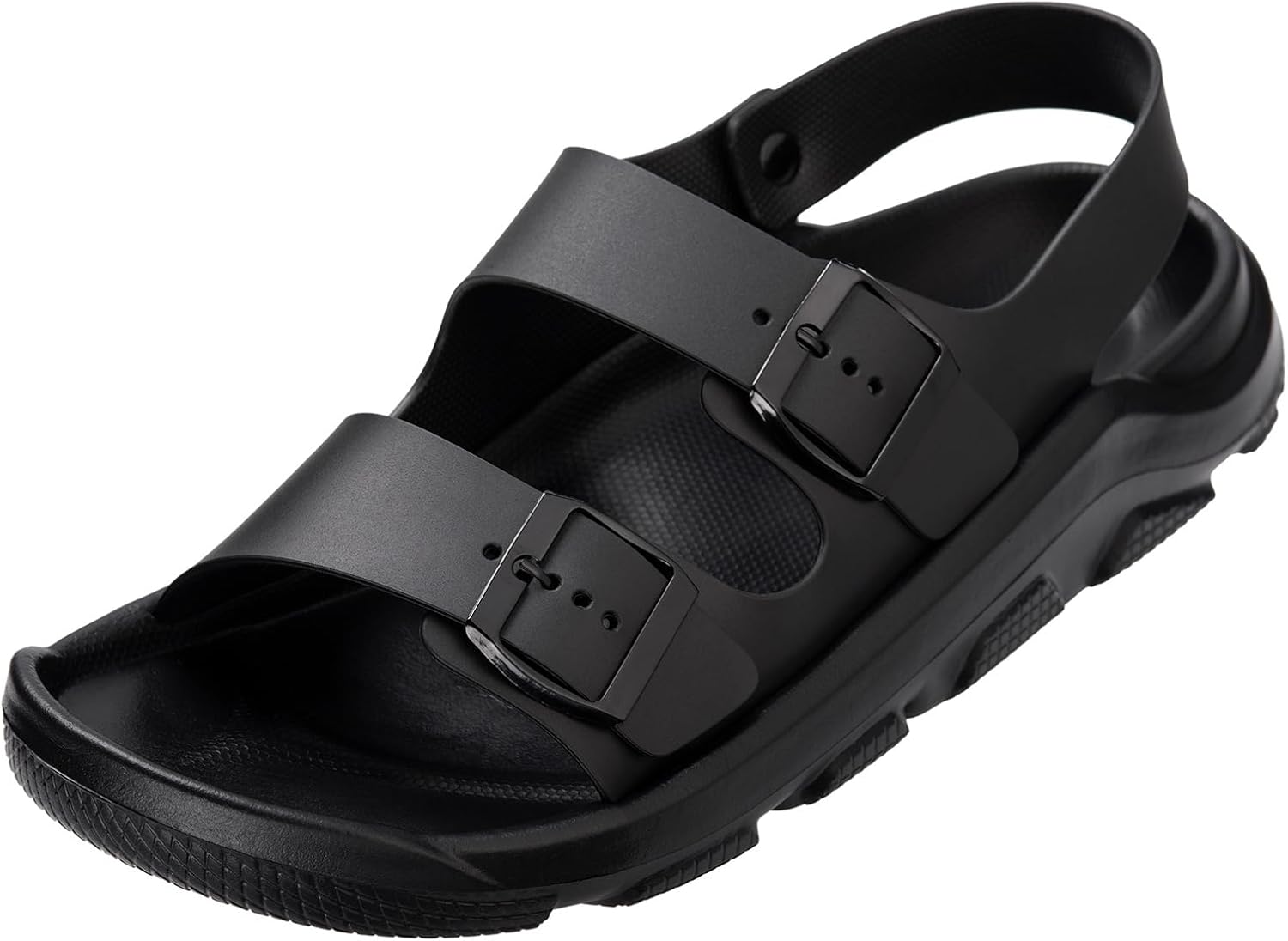 Harssidanzar Summer Mens Sandals Double Buckle Adjustable Slides Flat Beach Sandals KM242US
