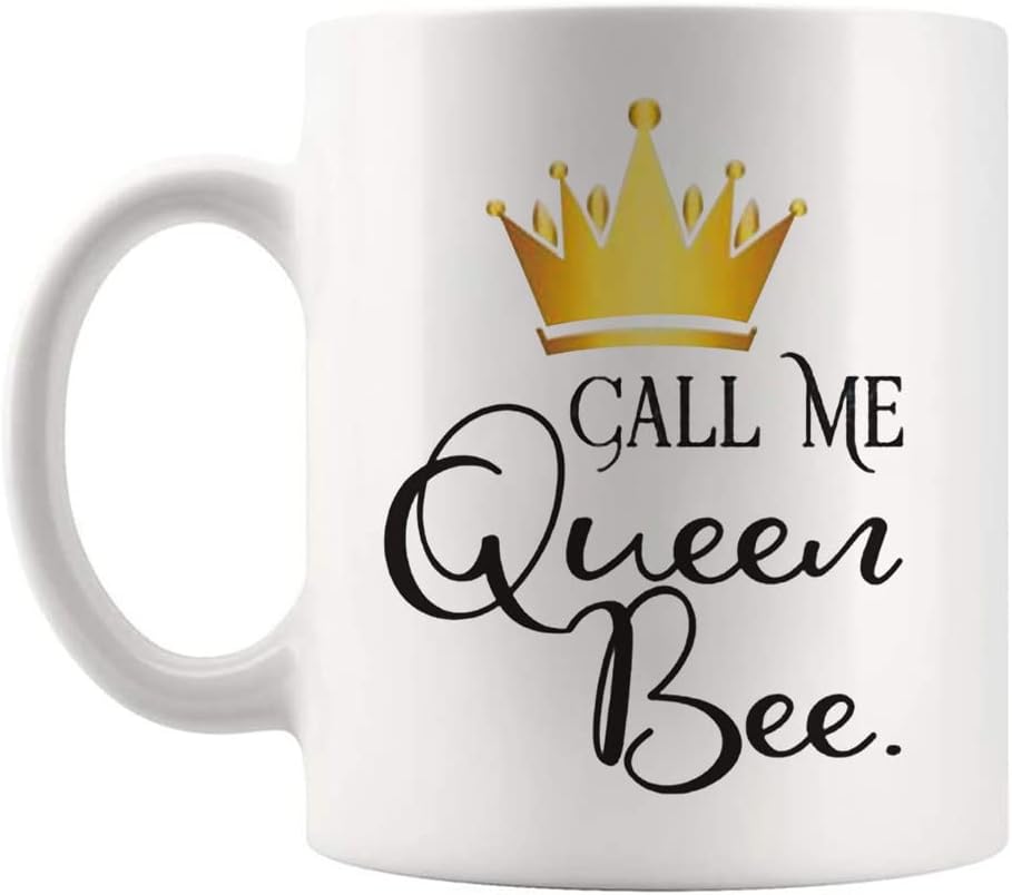 Fonhark - Call Me Queen Bee Mug, Queen Bee Coffee Mug for Boss, 11 Oz Novelty Coffee Mug/Cup, White