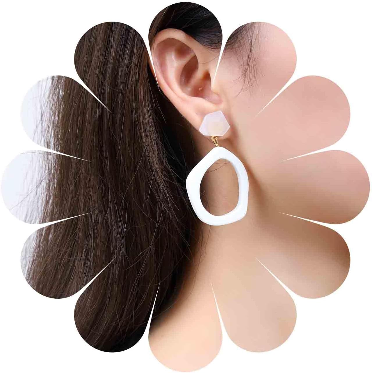 Boho Acrylic Resin Dangle Earrings White Acrylic Oval Earrings Hollow Resin Drop Earrings Large Acrylic Hoop Earrings Geometric Earrings Jewelry for Women