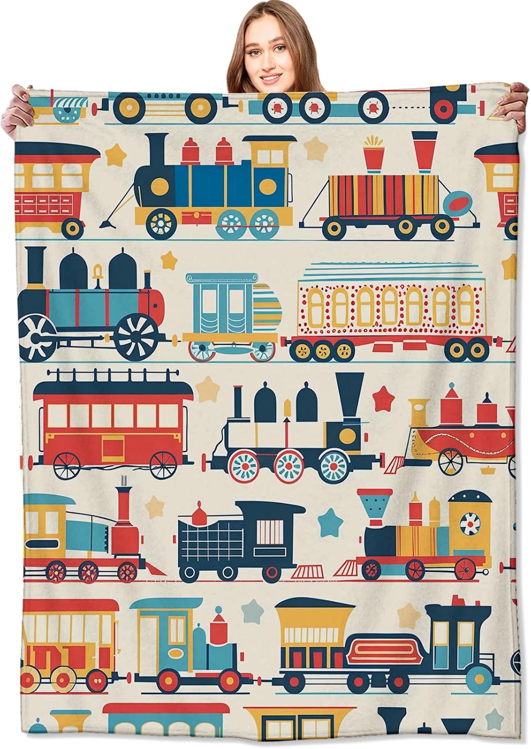 Cute Vintage Train Blanket,Funny Cartoon Car Throw Blankets,Gifts for Kids Boys, Lightweight Soft Fleece,for Sofa Couch Bed Room Travel,Modern Birthday Decor,50x60in