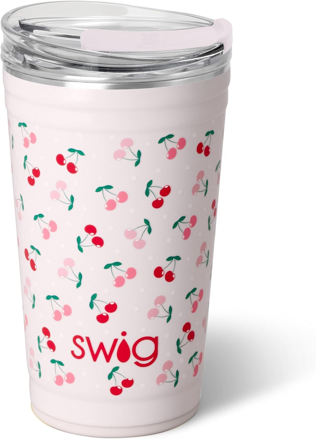 Swig Life 24oz Party Cup, Stackable Insulated Travel Coffee Tumbler with EZ Slider Lid, Cup Holder Friendly, Stainless Steel 24 oz Tumbler, Reusable Coffee Mug (Cherry Pie)