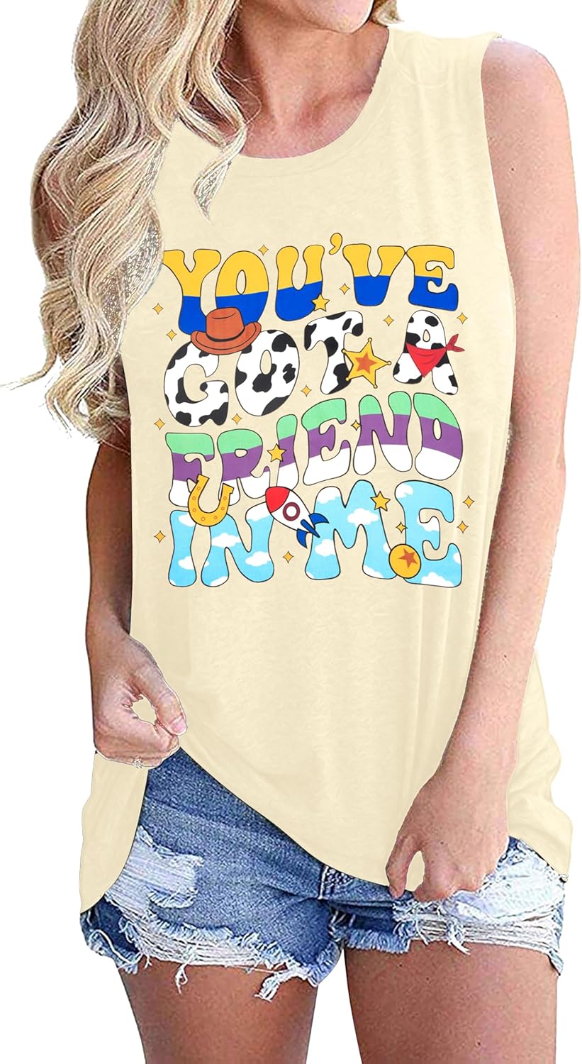 You've Got A Friend in Me Tank Tops for Women Funny Toy Graphic Letter Print Shirts Cute Family Vacation Tees