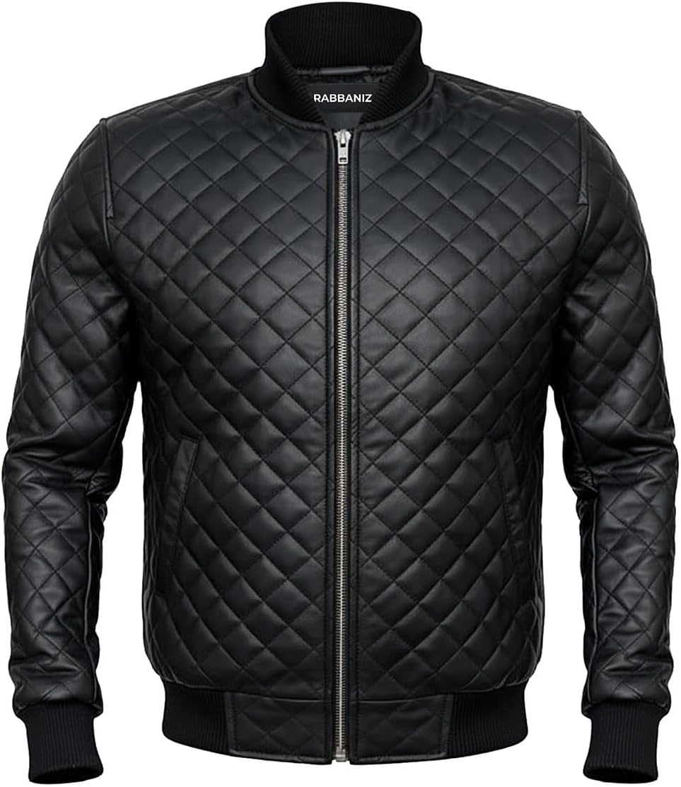 Men's Black Quilted Bomber Jacket - Diamond Quilted Bomber Lambskin Leather Jacket