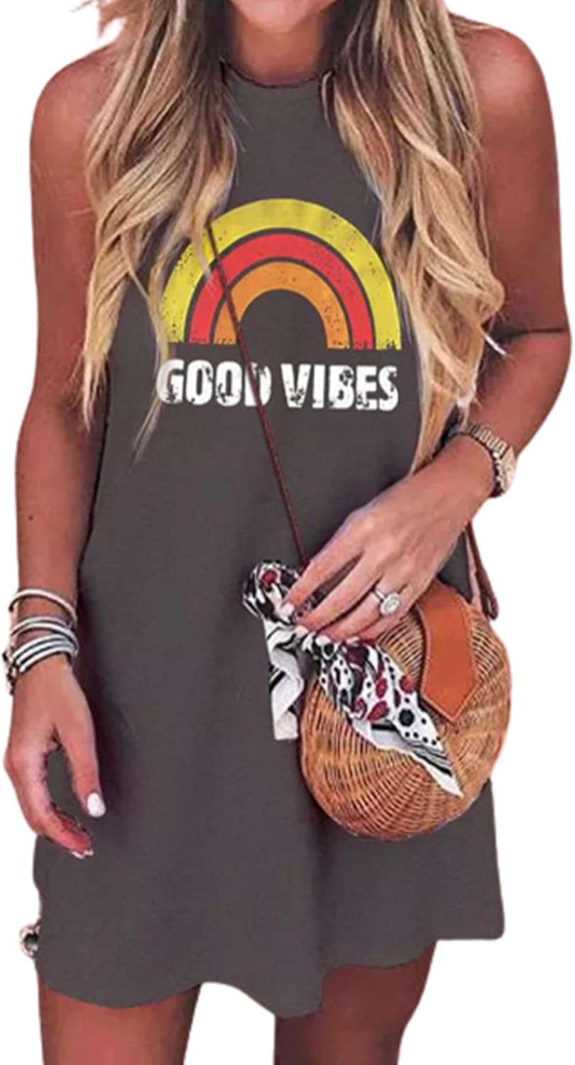 Sun Salt Sand Coconut Tree Sleeveless Mini Dress Women Casual Summer Beach Vacation Dress Workout Tank Dress